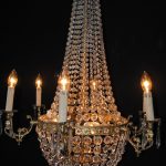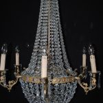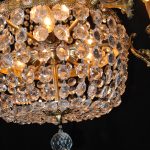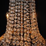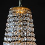 Mooie Zak kroon met 9 lichtpunten in totaal. 3 lichtpunten in het midden van de zakkroon en 6 lichtpunten aan de buitenkant.In de rand zijn ook facetgeslepen kralen verwerkt. Aan de schaaltjes hangen ijspegeltjes