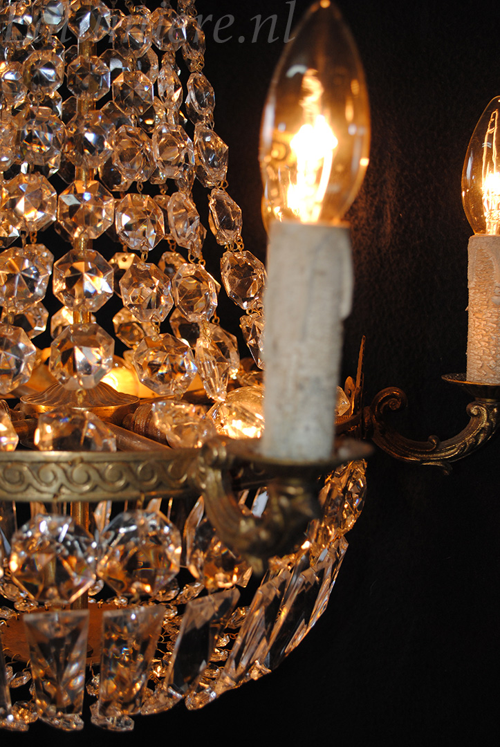 Mooie Zak kroon met 9 lichtpunten in totaal. 3 lichtpunten in het midden van de zakkroon en 6 lichtpunten aan de buitenkant.